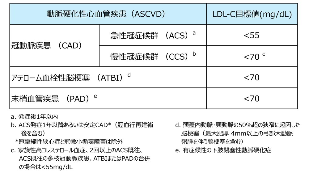 二次予防のLDL-C目標は 100 mg/dL 未満が基本でした。